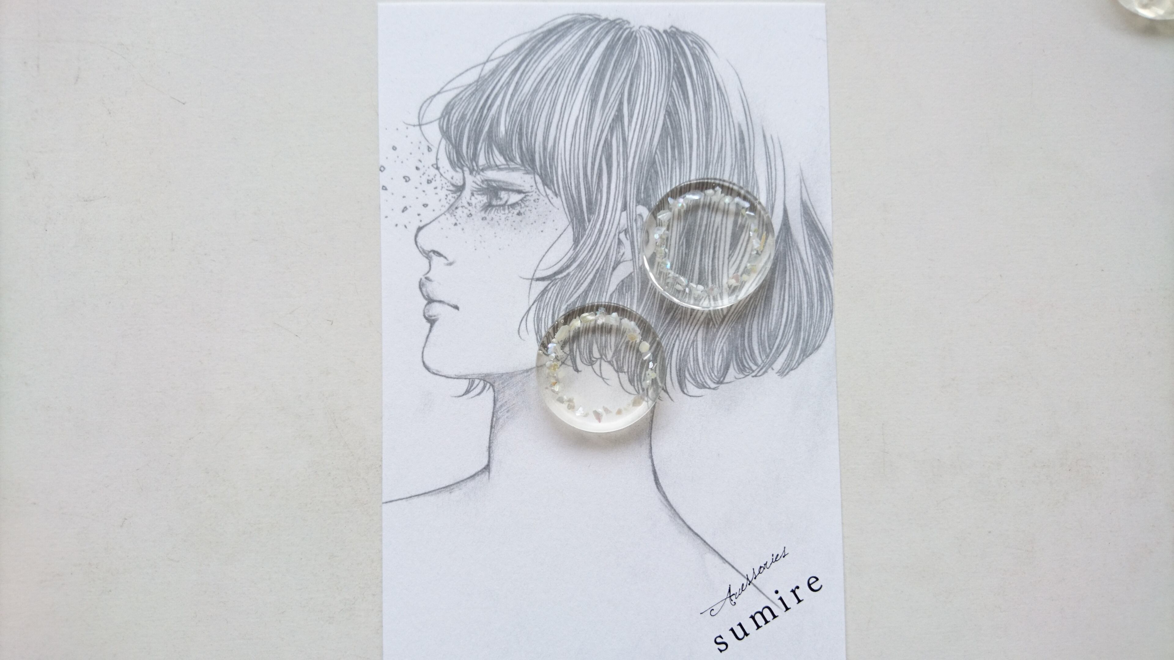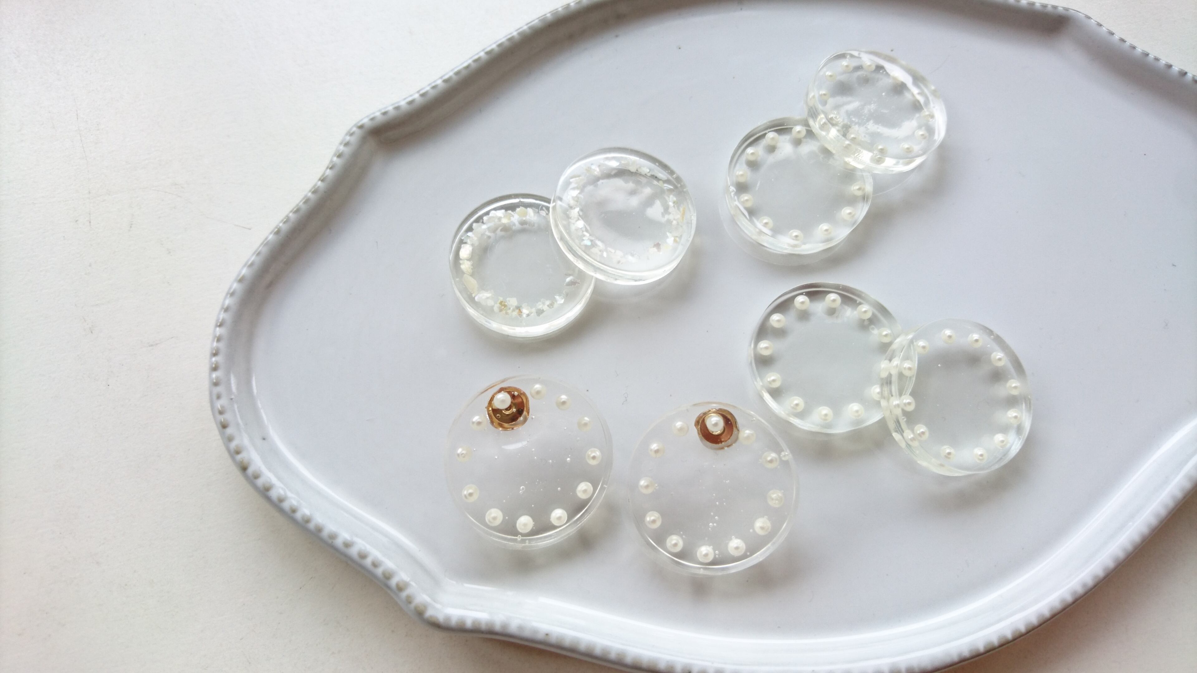 パールとシェルのクリアプレートピアスです。(イヤリングに変更可能です。)